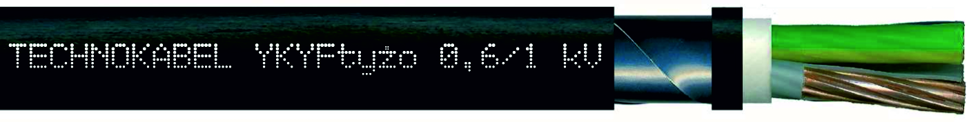 YKYFtyżo-O 0,6/1 kV i YKYFty-O 0,6/1 kV - kable przeznaczone do eksploatacji w warunkach częstej styczności z materiałami ropopochodnymi np. stacje benzynowe, magazyny, stacje przeładunkowe materiałów pędnych, smarów itp. Powłoka kabli wykonana jest ze specjalnego tworzywa termoplastycznego na bazie polichlorku winylu (PVC) spełniającego wymagania normy PN-EN 60811-404 w zakresie olejoodporności. XnKXSFtxnżo 0,6/1 kV i XnKXSFtxn 0,6/1 kV - kable bezhalogenowe stosowane tam, gdzie potrzebne jest większe bezpieczeństwo na wypadek pożaru. W przypadku pożaru kable te nie rozprzestrzeniają płomienia, emisja dymu jest bardzo niska, a emitowane gazy nie są korozyjne.